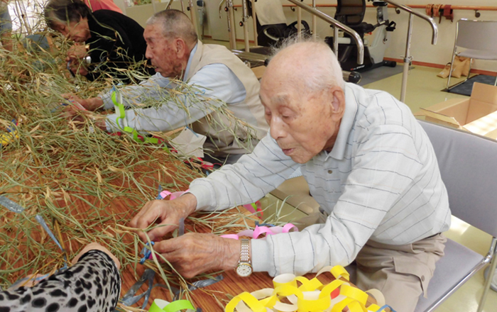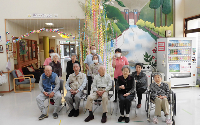 7月7日の七夕に合わせて、一人ひとりの願いを短冊に書き込み七夕の飾りつけを行いました。皆さんの願いは、自身の健康と家内安全でした。皆さんいつまでもお元気でいてください。
