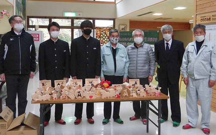 この木工作品は、同校の文化祭で展示販売される予定でしたが、コロナ禍の影響で展示販売ができなくなったことから、当苑への寄贈となったものです。